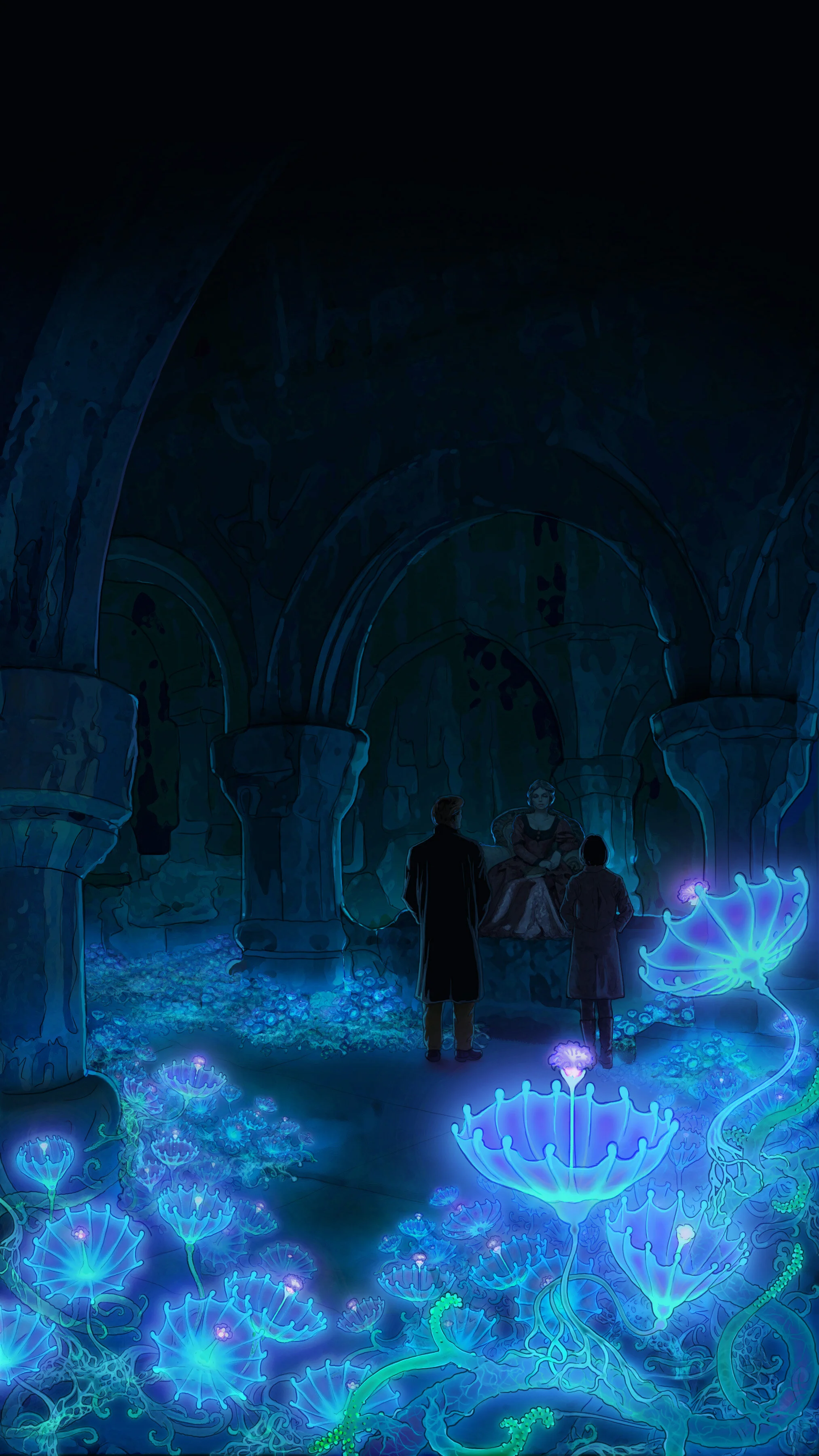 The Lady sat in a near trance of concentration, perched on her temporary throne above the vast subterranean beds of luminescent Ashilm that were chief among her realm’s greatest treasures. More than a millennium of careful hybridization in deep caverns like this one had left these diaphanous fungal flowers intolerant of any slightest variation in temperature, humidity, or nutrient composition—all of which were threatened now by the torrential wrath of this ‘inexplicable’ storm.