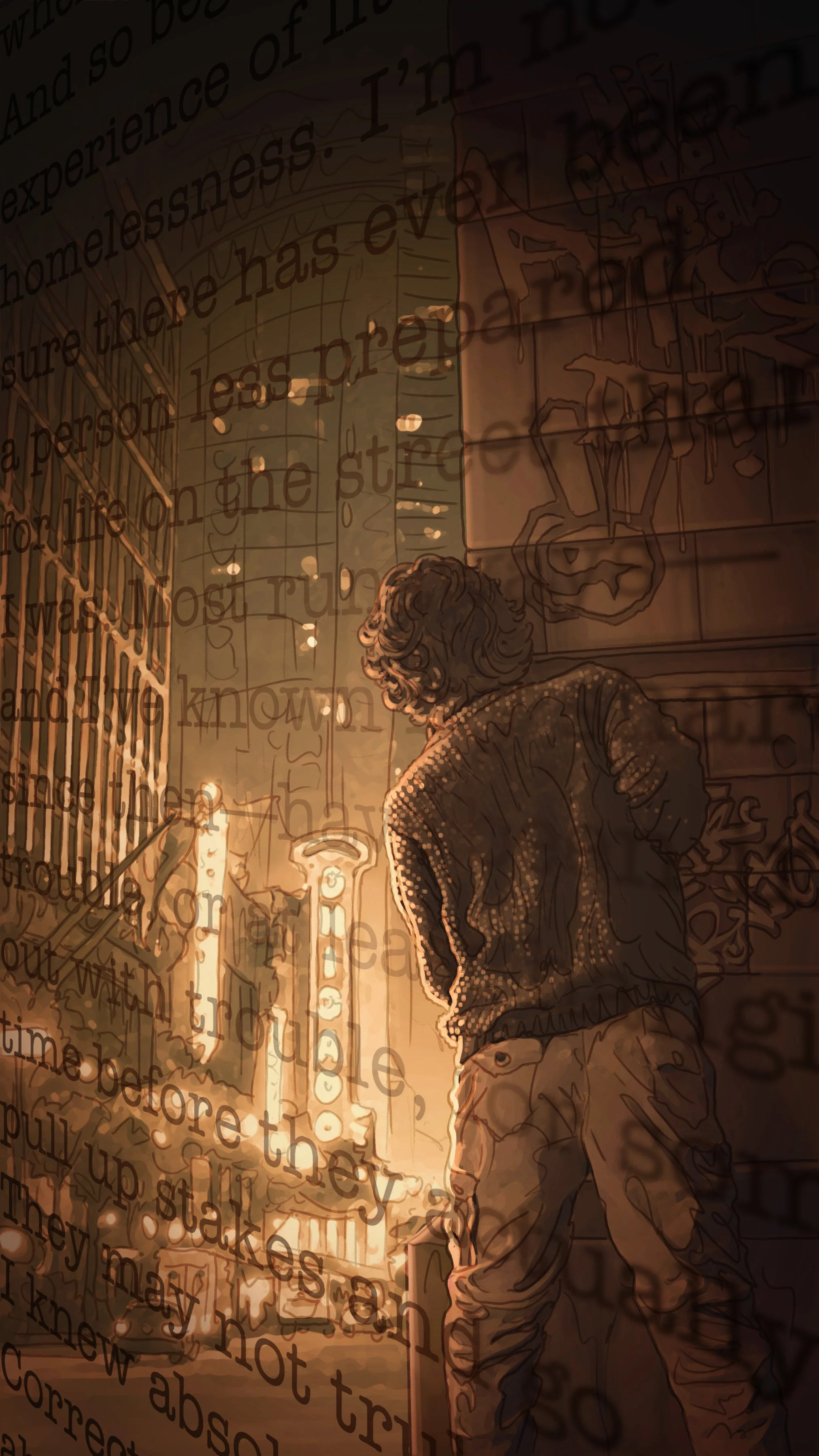 This week’s image puts us back in Matt’s Tale, as the newly teenage man is forced to flee into the city without a clue about what he’ll do, or how he’ll live without any resources, street-smarts, or ability to confide his plight in anyone. Hopefully, the image speaks for itself. :]